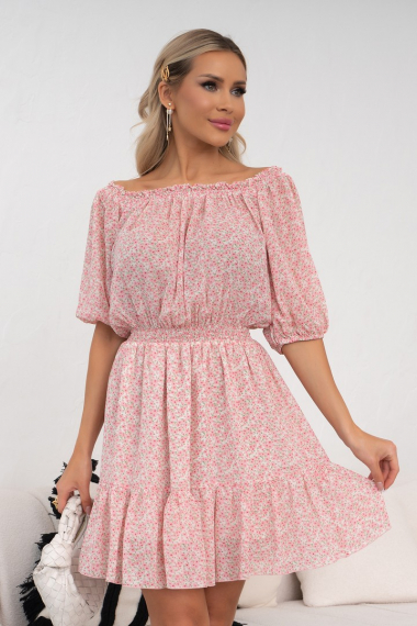 Фото товара 22522, платье в розовый цветочек на резинке